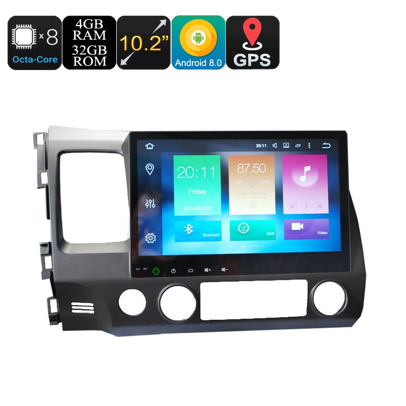 Honda 2 Din Car Media Player – 10.2 Inch Screen, 4+32GB, Android 9.0.1, GPS, WiFi, 3G&4G Support, Octa-Core CPU, Bluetooth
