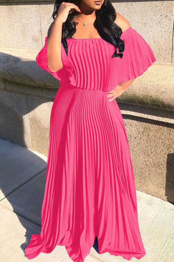 Lovely Bohemian Fold Design Pink Maxi Dress