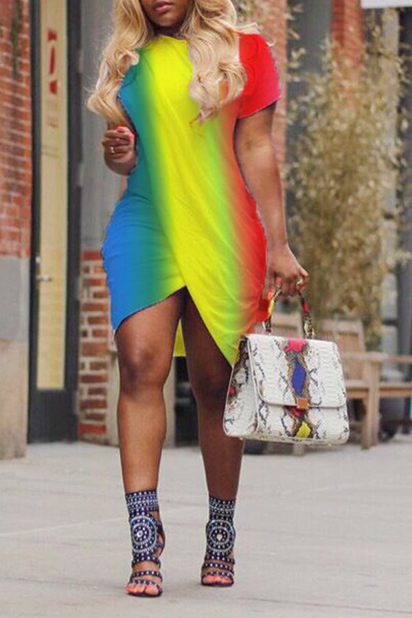 Lovely Casual Color-lump Patchwork Multicolor Mini Dress