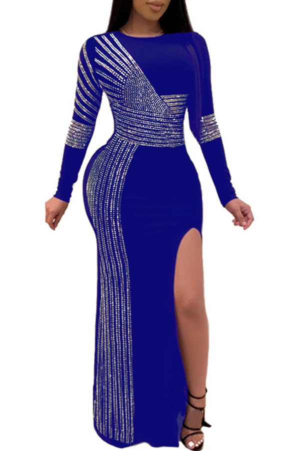 Lovely Chic Patchwork Blue Maxi Dress