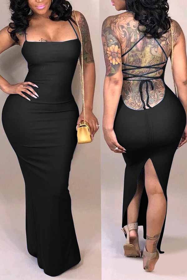 Lovely Casual Backless Black Qmilch Ankle Length Dress