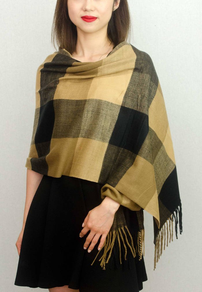 Be the first to review “Cashmere Feel Colorblocked Shawl Brown / Black”