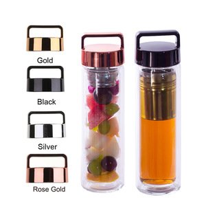 BPA free GA6080 450ML/16OZ shiny handle lid double wall borosilicate glass tea infuser water bottle with tea filter