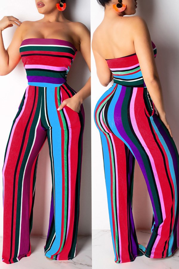 Lovely Casual Backless Striped One-piece Jumpsuit(With Elastic)