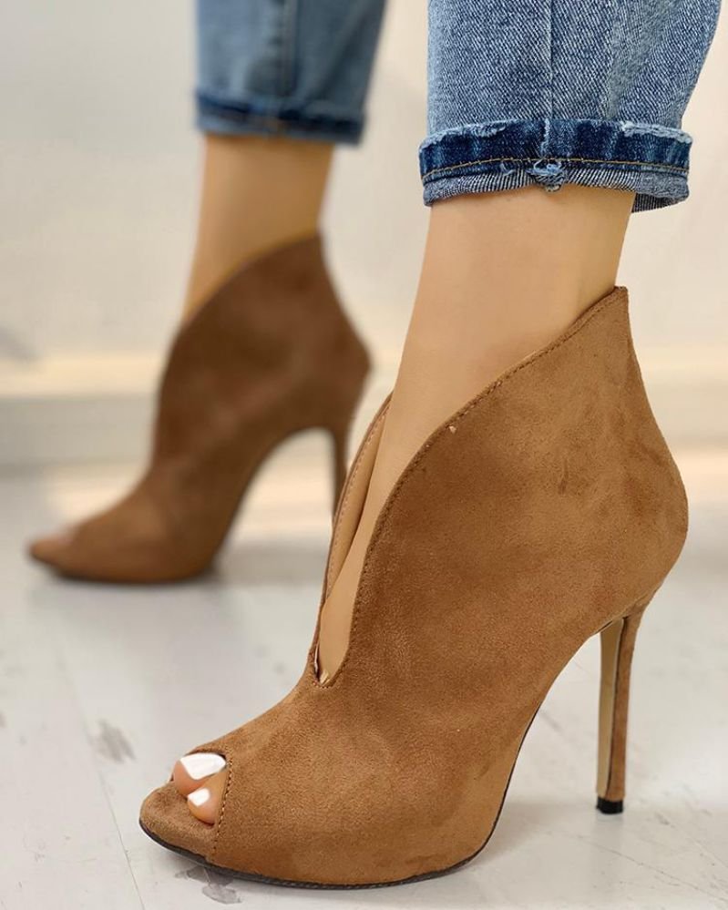 Peep Toe V-Shape Cut Out Ankle Boots