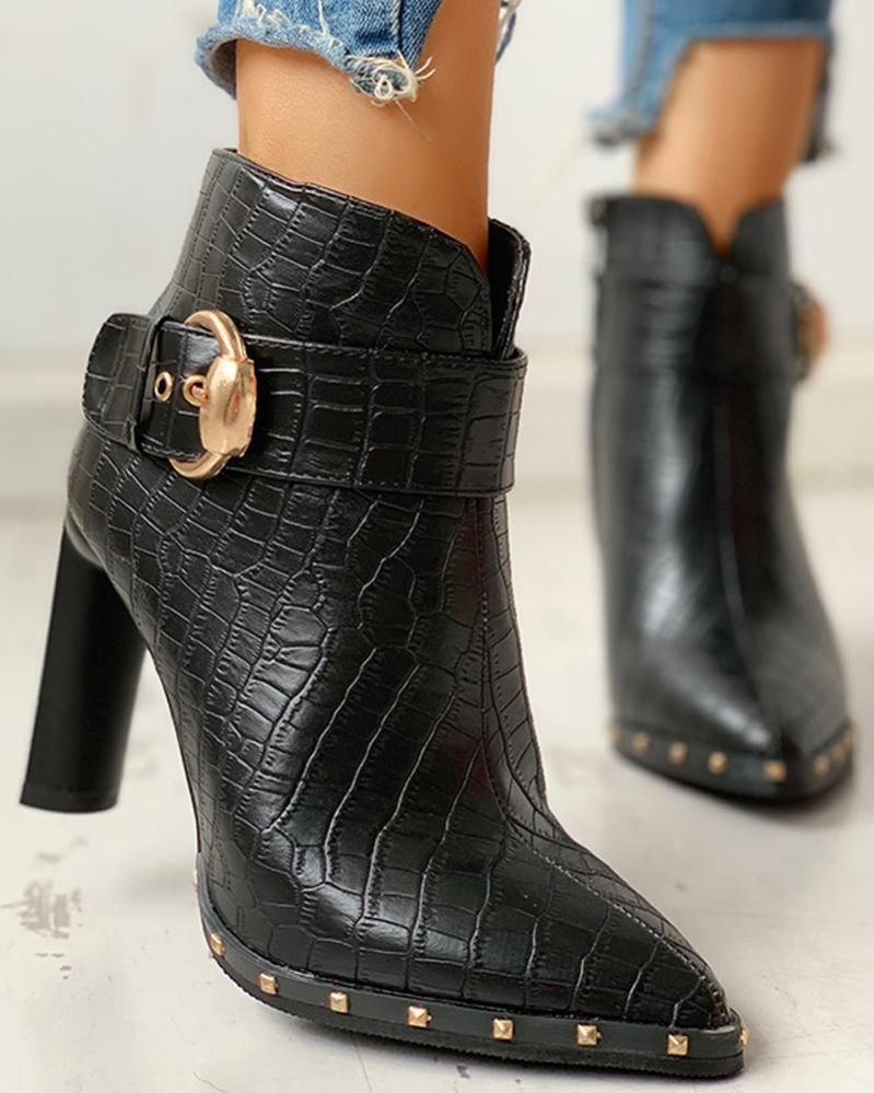 Zip Detail Buckle PU Ankle Boots