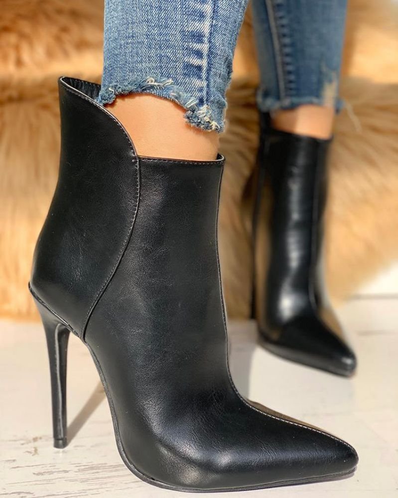 Pointed Toe PU Ankle Boots