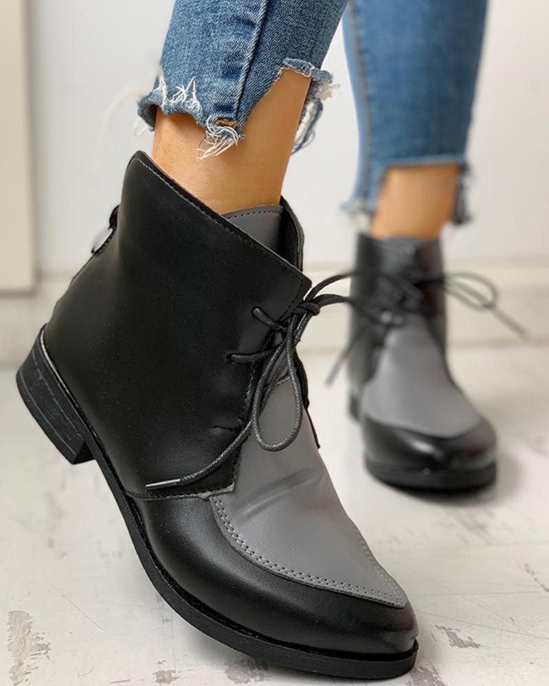 Pointed Toe PU Lace-Up Chunky Heeled Boots