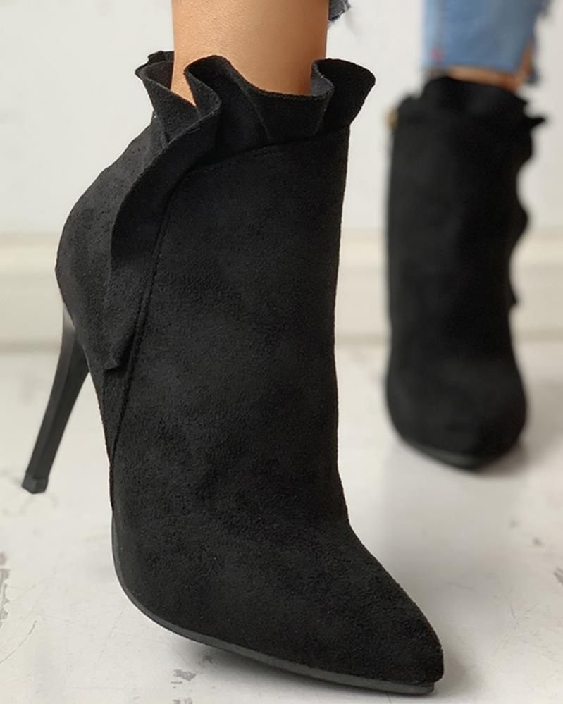 Pointed Toe Zipper Design Thin Heeled Boots