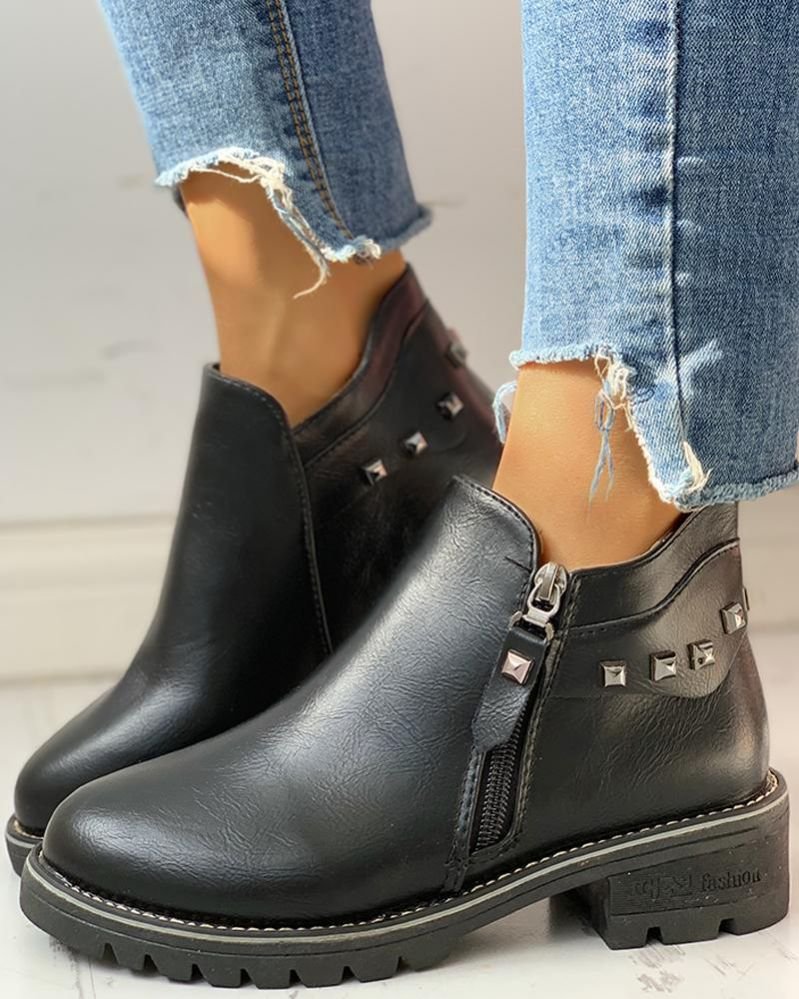 Zipper Design Chunky Heeled Ankle Boot