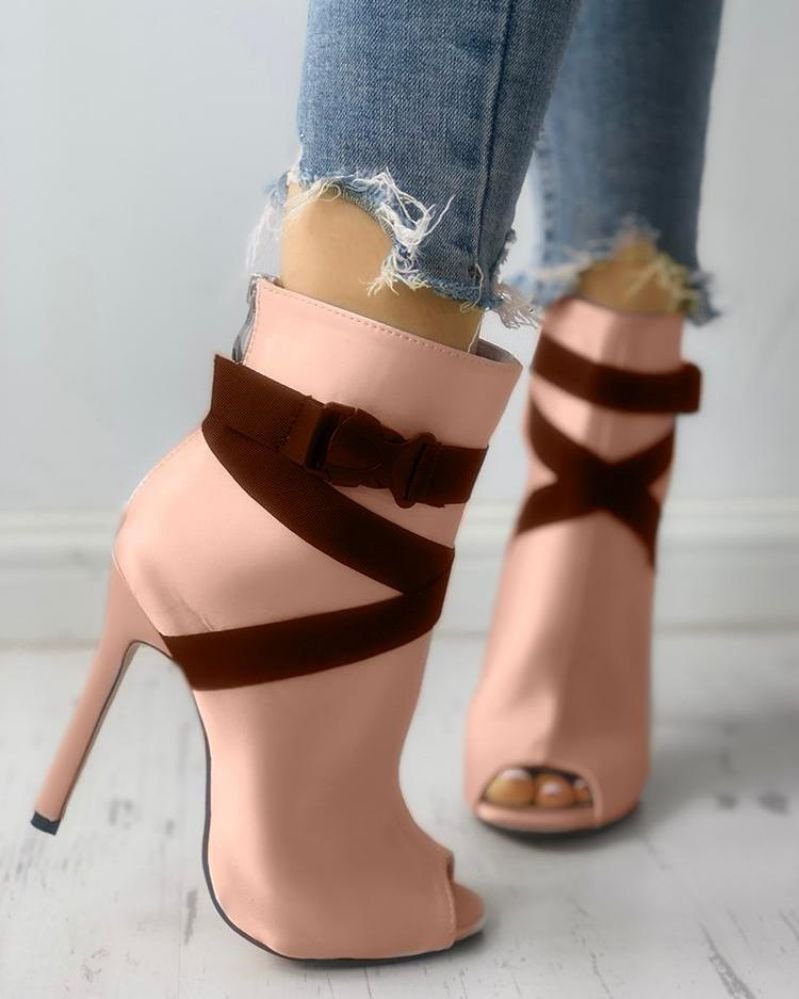 Suede Crisscross Bandage Peep-toe Thin Heels