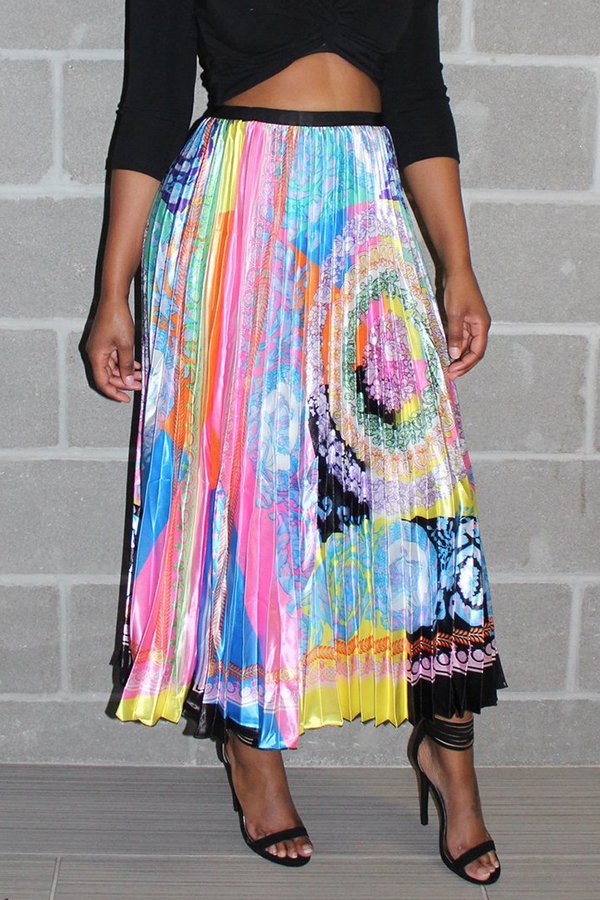 LovelySexy Rainbow Printed Mid Calf Skirts