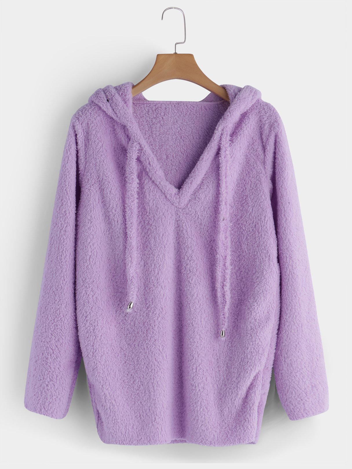A fashion mohair hoodie featuring a drawstring hooded neckline, long sleeves,and a relaxed fit. Pair it with shorts is ok.